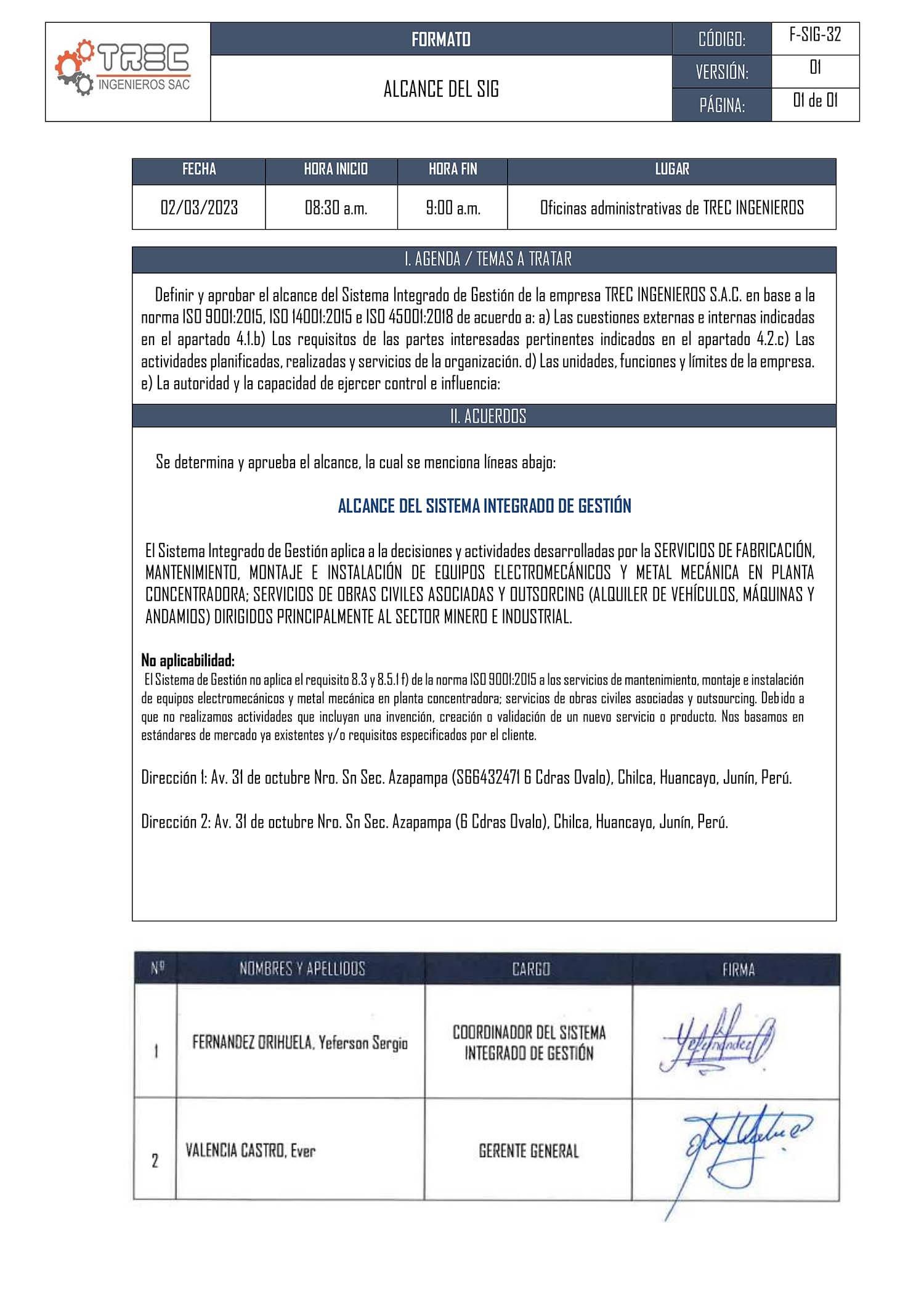 DIRECCIĂN: AV. 31 DE OCTUBRE S/N â AZAPAMPA â CHILCA- HUANCAYO- JUNIN